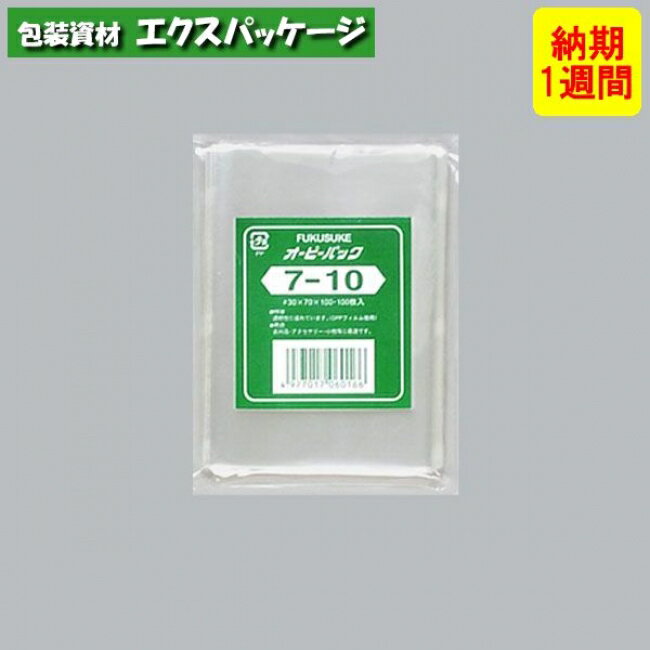 ●オーピーパック テープなし No.7-10 1000枚 透明 OPP 納期1週間 取り寄せ品 0840165 (0843164) 福助工業