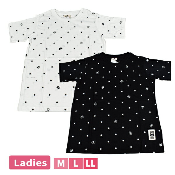 婦人 レディース トップス 水玉 Tシャツ 猫 半袖 カットソー 白黒さん かわいい ねこちゃん 白 黒 ゆるキャラ 1個までメール便可