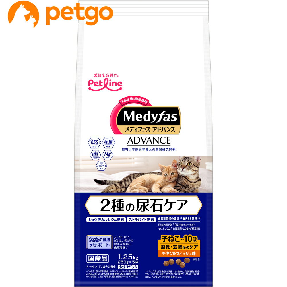 メディファスアドバンス 2種の尿石ケア 子ねこから10歳まで 避妊・去勢後のケア チキン&フィッシュ味 1.25kg