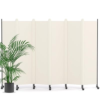 KELIXU パーテーション 間仕切り 6連 自立式 カバーストリップ付き 衝立 キャスター付き 高さ1.78m×幅3.02m 布タイプ 折りたたみ 仕切りパネル 軽量 クロスパーテーション 目隠し 屏風 おしゃれ 組み立て簡単 部屋 オフィス 会議室 (