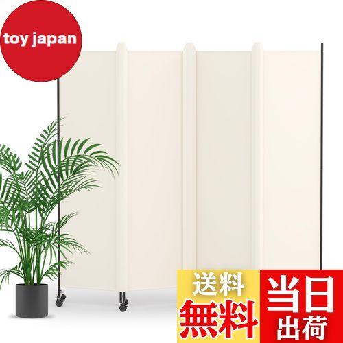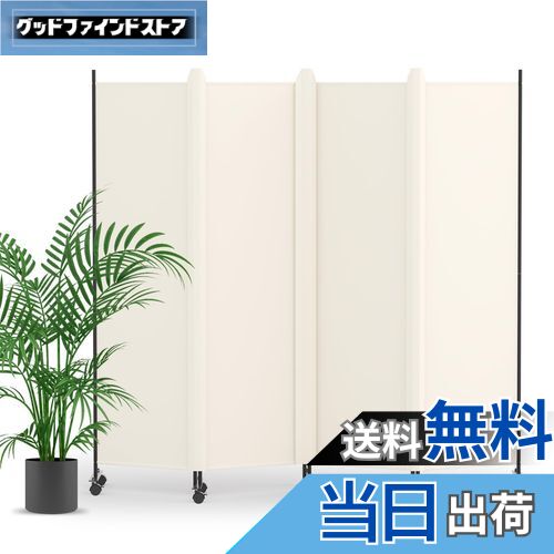 パーテーション 間仕切り 4連 自立式 カバーストリップ付き 衝立 キャスター付き 高さ1.78m×幅2.24m 布タイプ 折りたたみ 仕切りパネル 軽量 クロスパーテーション 目隠し 屏風 おしゃれ 組み立て簡単 部屋 オフィス 会議室 (ベージュ