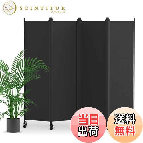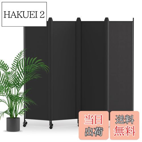 【送料無料】KELIXU パーテーション 間仕切り 4連 自立式 カバーストリップ付き 衝立 キャスター付き 高さ1.78m×幅2.24m 布タイプ 折りたたみ 仕切りパネル 軽量 クロスパーテーション 目隠し 屏風 おしゃれ 組み立て簡単 部屋 オフィス 会議室 (ブラック)
