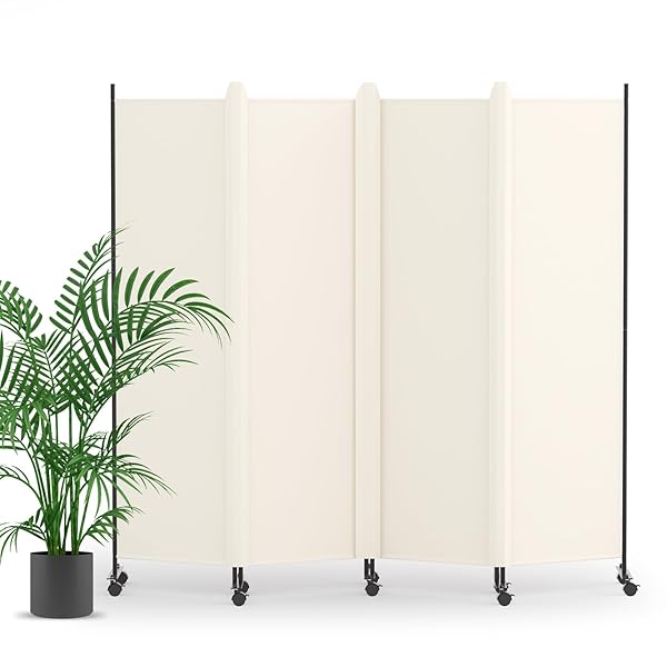 【送料無料】KELIXU パーテーション 間仕切り 4連 自立式 カバーストリップ付き 衝立 キャスター付き 高さ1.78m×幅2.24m 布タイプ 折りたたみ 仕切りパネル 軽量 クロスパーテーション 目隠し 屏風 おしゃれ 組み立て簡単 部屋 オフィス 会議室 (ベージュ)