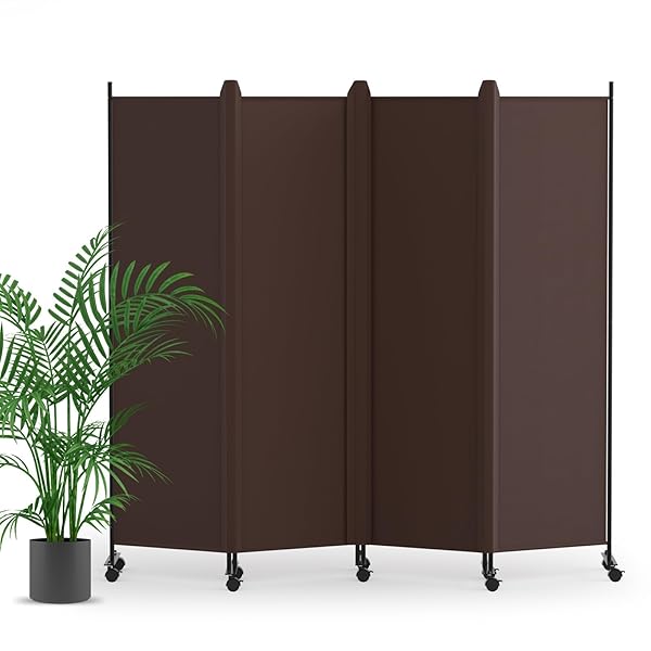 パーテーション 間仕切り 4連 自立式 カバーストリップ付き 衝立 キャスター付き 高さ1.78m×幅2.24m 布タイプ 折りたたみ 仕切りパネル 軽量 クロスパーテーション 目隠し 屏風 おしゃれ 組み立て簡単 部屋 オフィス 会議室 (ブラウン