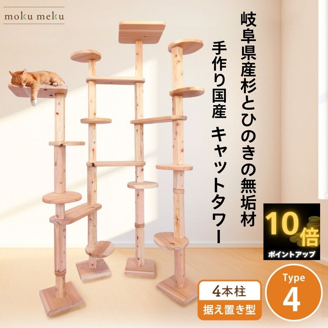 【 anan 25ans 2誌掲載 マラソンウォーミングアップ P10倍 5%offクーポン 】 国産 杉 桧 キャットタワー 木製 TYPE4 2ベッドセット 据え置き型 シンプル スリム 無垢材 猫 猫タワー 爪とぎ 丈夫 頑丈 大型猫 賃貸可能 多頭飼い