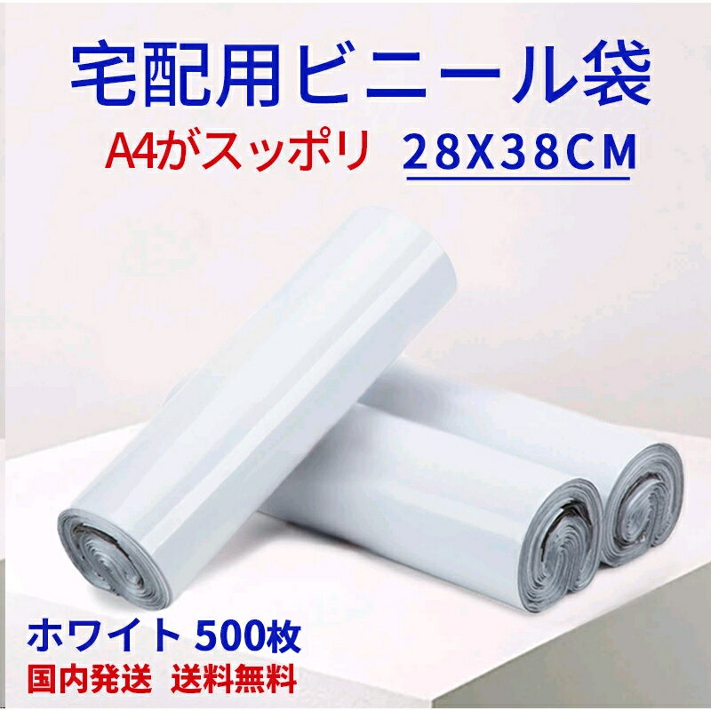 【500枚】宅配ビニール袋 宅配ポリ袋 梱包 透けない 白 A4+サイズ 大きめサイズ ワンタッチテープ 強力テープ付き 薄手 軽量 防水 通販 ゆうパケット クリックポスト対応 100枚入 宅配袋