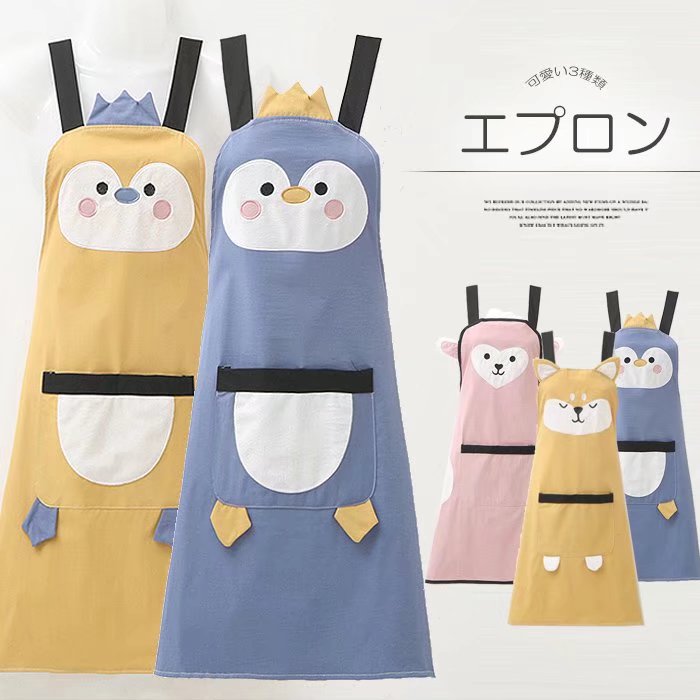 かわいいどうぶつのデザイン!動物モチーフ エプロン アニマル H型 肩ズレにくい ポケット入り カフェエプロン 花屋 保育士 幼稚園 オシャレ インスタ映え