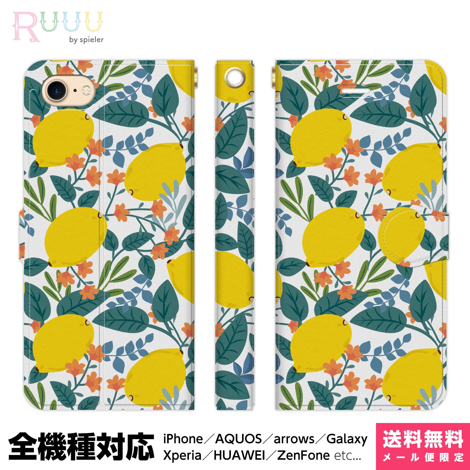 全機種対応 スマホケース 手帳型 iPhone 16 15 14 13 12 11 SE Pro Max Plus Xperia AQUOS Galaxy ケース カバー Ruuu by spieler 南国 レモン柄 フルーツ柄 シトラス 柑橘 果実 果物 くだもの ボタニカル 花柄 模様 夏 人気 ダイアリー スタンド付 カード収納 おしゃれ