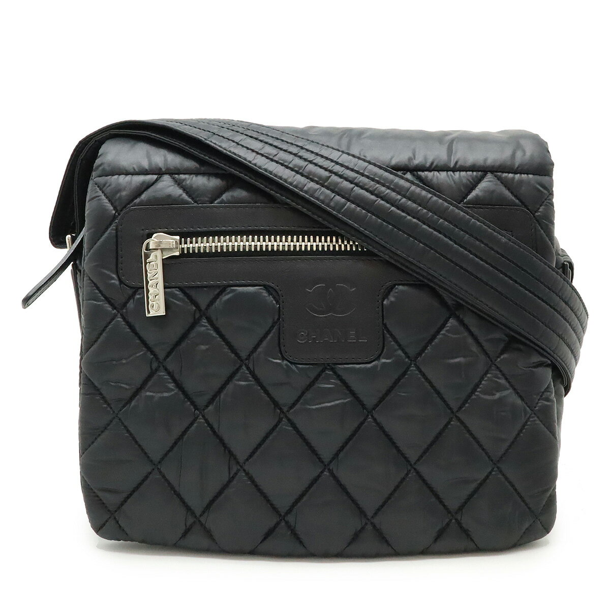 CHANEL シャネル コココクーン マトラッセ ショルダーバッグ メッセンジャーバッグ 斜め掛け コーティングナイロン レザー ブラック シルバー金具 【中古】