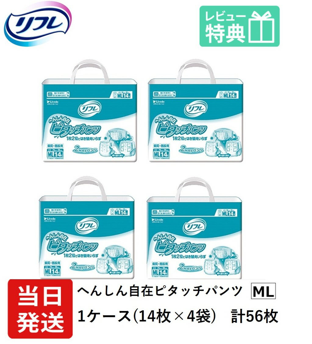 【当日発送】 リフレ 大人用紙おむつ パンツ 介護 テープ オムツ ML はくパンツ へんしん自在 ピタッチパンツ MLサイズ 14枚×4袋 ml オムツ 介護 大人用 紙おむつ 紙パンツ 紙おむつ 大人用 紙おむつ パンツ 紙パンツ 介護用パンツ 介護用 おむつ おむつ 大人 おむつ 大人用