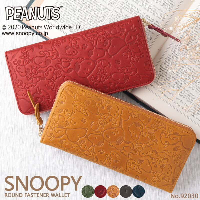 長財布 レディース スヌーピー 本革 牛革 レザー 財布 ラウンドファスナー PEANUTS ピーナッツ SNOOPY ウッドストック 大容量 カード収納14枚 YKKファスナー NO.92030 送料無料 L1 送料込み プレゼント ギフト