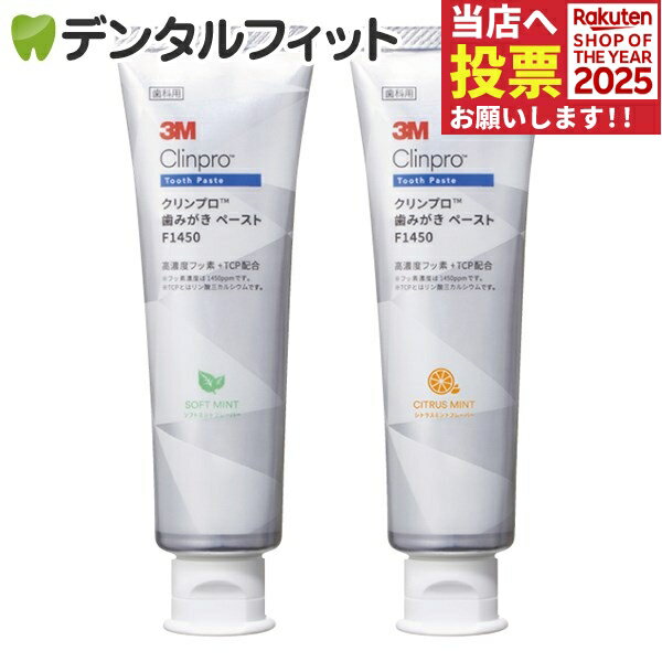 歯科医院専売品 むし歯予防に重要な成分であるフッ素が1450ppmと高濃度に配合された歯磨き粉です。 飲食によって口の中が酸性になると、表面が溶けることで歯が弱まりますが、唾液に含まれる「カルシウム」と「リン」が溶け出した部分を修復して、むし歯になるのを防ぎます。 これを「再石灰化」といいます。 一般的には「カルシウム」「リン」「フッ素」の3成分を同時配合すると、再石灰化の効果を十分に発揮させることができません。 しかし、3M独自の新技術により、3成分を同時に配合しながらも、高い再石灰化能力を発揮することに業界で初めて成功した歯みがき剤なのです! むし歯の経験が多い、矯正治療中、間食が多い、加齢やストレス、喫煙などの要因で唾液が少ない等、むし歯リスクが高い方におすすめです。 【商品情報】 容量:90g 香味:ソフトミント、シトラスミント ※こちらの商品はクリーニングペーストPMTC用ではありません。 注文の際にはご注意ください。 【ご注意(免責)事項】当店では、サイト上に最新の商品情報を掲載するよう努めておりますが、メーカーの都合等により、商品規格や仕様(容量・成分・パッケージ・原産国など)が予告なく変更される場合がございます。このため、実際にお届けする商品と商品ページ上の情報表記が異なる場合がございますので、ご使用前には必ずお届けした商品の商品ラベルや注意書きをご確認ください。また、商品情報についてページ表記以外の詳細が必要な場合は、メーカー等にお問合せください。▼ ▼ 関連商品の購入はコチラから ▼ ▼ PMTCの複数工程を1本に! 『クリンプロ クリーニングペーストPMTC用 1本(50g)』 持ち運びに便利な個包装タイプ 『クリンプロ デンタルフロス(個装タイプ) 1袋(32本入)』 大容量お得な150本入り! 『クリンプロ デンタルフロス(ボックスタイプ) 1箱(150本入)』
