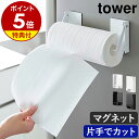 【特典付き】[ 片手でカットマグネット挟み込み式キッチンペーパーホルダー タワー ]山崎実業 tower キッチンペーパーホルダー マグネット 片手で切れる 磁石 収納 北欧 おしゃれ モノトーン yamazaki 公式 ブラック ホワイト 1450 1451【ポイント5倍 送料無料】