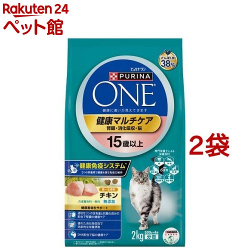 ピュリナワン キャット ドライ 健康マルチケア 15歳以上 チキン(2kg*2袋セット)【d_one】【dalc_purinaone】【qqu】【ピュリナワン(PURINA ONE)】