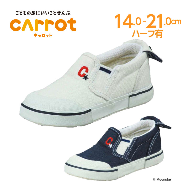 商品特徴 ロングセラーを続けるムーンスター「キャロット」のシューズです。つま先にゆとりを持たせた形状で、足の指を圧迫せずにのびのび動かせます。踵の「カウンターボックス」が、子どものやわらかくゆがみやすい足を箱型構造でしっかり支えます。「フレックスジョイント」は、足の曲がりと同じ位置で靴が曲がる設計で、足に余計な負担をかけません。インソールは足裏になじみ、取り出して洗濯ができるのでいつも清潔に保てます。また、「Ag+抗菌防臭」も搭載しています。アッパーには撥水加工を施しています。水をはじいて靴内を快適に保ちます。サイドゴアタイプで脱ぎ履きもらくちん。シンプルなカラーが洋服と合わせやすく、元気に履いていただけます。重量は16.0cmで片足約120gです。 カラー ホワイト ネイビー 足 幅 (ウィズ) 素 材 アッパー:綿布 ソール:合成ゴム 重 量 片足約120g(16.0cm時) 生産国 CHINA サイズ 子供靴 14.0cm 14.5cm 15.0cm 15.5cm 16.0cm 16.5cm 17.0cm 17.5cm 18.0cm 18.5cm 19.0cm 19.5cm 20.0cm 20.5cm 21.0cm 上履き▼種類別タイプから選ぶ▼ 公式ショップ限定!!待望の3Eタイプの上履き新発売! ※写真の色と実際の商品の色は多少異なる場合がございます。※商品画像はメーカーサンプル品の画像です。 製品仕様・デザインは改良のため予告なく変更される場合があります。※ご注文画面にてご注文を確定後は、ご注文内容の取消・変更・追加を承ることができません。※2回以上に分けてご注文いただいた場合、同梱(ひとつの配送にまとめて出荷)対応を承ることができません。※他公式店舗間で在庫共有のため、同一商品を同時受注した場合にデータ到着までに在庫が欠品してしまうことがございます。 在庫欠品の際は在庫のある商品のみをお手配させていただきます。詳細はご利用ガイドの「商品在庫について」をご確認ください。以上の点をあらかじめご了承ください。ムーンスター キャロットは、お子さまの足にやさしい「4つの機能」で、お子さまの正しい足の成長をサポートします。「遊びや運動」から「通園・通学」までお子さまの様々な生活シーンに対応するベビー・キッズシューズです。