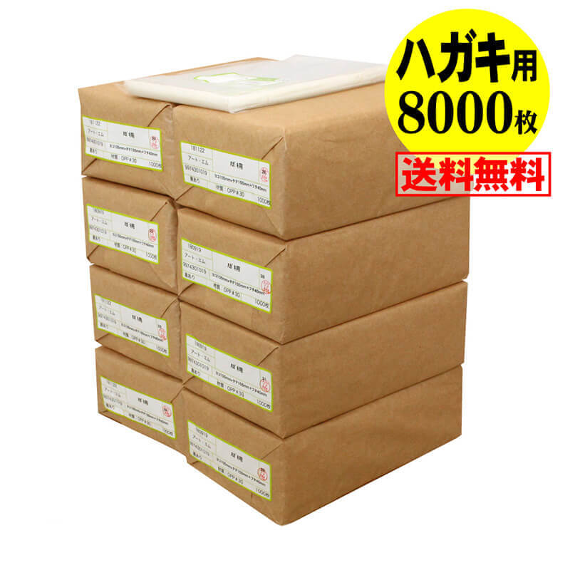 【国産】テープ付 ハガキ KG判用 (生写真・ブロマイド) 透明OPP袋【8000枚】30ミクロン厚(標準) 105x155+40mm