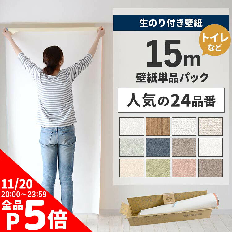 【11/20 20時〜4h全品P5倍】 壁紙 のり付き 15m パック 壁紙の上から貼れる 人気 24品番 白 ホワイト シンプル 無地 簡単 張り替え 初心者 DIY サンゲツ SP 国産壁紙 トイレ リフォーム 壁紙屋本舗