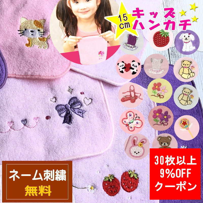 30枚以上まとめ買いクーポン11/30まで/ 入園 ハンカチ 子供 【15cmタオルハンカチ】入園 入学 名前入り タオルハンカチ 幼稚園児 卒園 タオルハンカチ 名前入り 可愛い刺繍ハンカチ 幼稚園児 卒園記念品 キッズタオル かわいいハンカチ子供