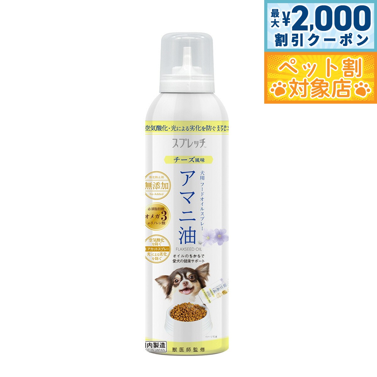【最大2000円OFFクーポン!&店内ポイント最大60倍!本日限定!】スプレッチ 犬用 アマニ油(チーズ風味) 150ml サプリメント 必須脂肪酸 オメガ3 α-リノレン酸 酸化防止ボトル 無添加