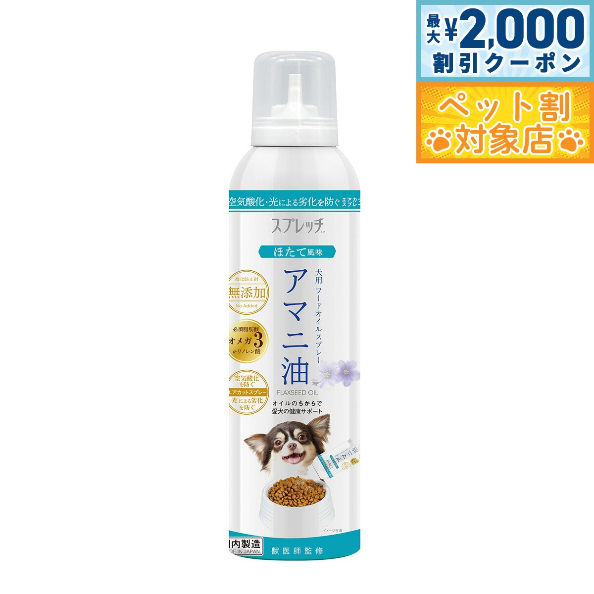 【最大2000円OFFクーポン!&店内ポイント最大60倍!本日限定!】スプレッチ 犬用 アマニ油(ほたて風味) 150ml サプリメント 必須脂肪酸 オメガ3 α-リノレン酸 酸化防止ボトル 無添加
