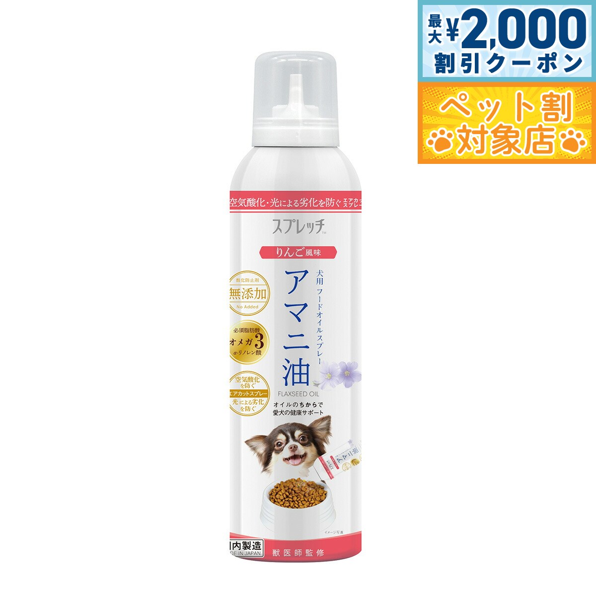 【最大2000円OFFクーポン!&店内ポイント最大60倍!本日限定!】スプレッチ 犬用 アマニ油(りんご風味) 150ml サプリメント 必須脂肪酸 オメガ3 α-リノレン酸 酸化防止ボトル 無添加