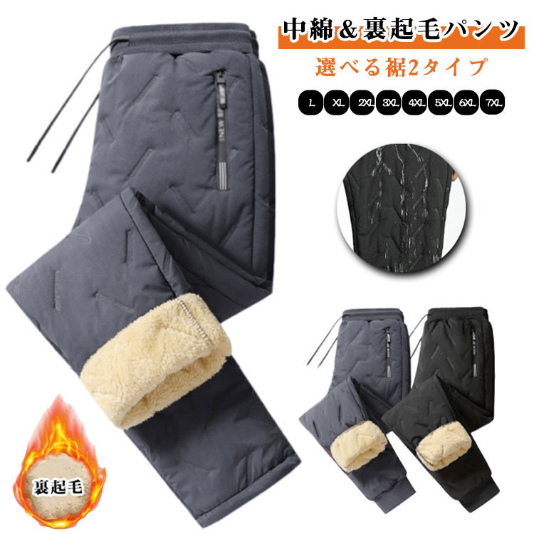 中綿&裏起毛パンツ選べる裾2タイプ!中綿入りだから暖かく軽い着心地と抜群の保温性が特徴。ふんわりとした裏起毛素材であたたかく、寒さが本格化するシーズンにも快適にお使いいただける1着です。ウエストはゴムx紐調節可能なイージー仕様で、大人の休日スタイルに最適。ゆったりとした股上とヒップから裾が細くなるテーパードシルエットになっており、世代を問わず人気のアイテム♪ストレート&ジョガーの2タイプ展開でシーンに合わせて選べる冬の万能パンツ。表面に撥水加工を施し、雨や雪の日でも濡れにくく安心。通勤・通学・アウトドアにもぴったり。穿いた瞬間に包み込まれるような暖かさと柔らかな着心地なので、リラックスウエア、ワンマイルウエアとしてもオススメ♪ サイズ L XL 2XL 3XL 4XL 5XL 6XL 7XL サイズについての説明 L 体重40-52.5kg XL 体重52.5-62.5kg 2XL 体重62.5-70kg 3XL 体重70-80kg 4XL 体重80-87.5kg 5XL 体重87.5-97.5kg 6XL 体重97.5-107.5kg 7XL 体重107.5-120kg 素材 ポリエステル 色 ブラック(ストレート) ブラック(ジョガー) グレー(ストレート) グレー(ジョガー) 備考 ●サイズ詳細等の測り方はスタッフ間で統一、徹底はしておりますが、実寸は商品によって若干の誤差(1cm〜3cm )がある場合がございますので、予めご了承ください。 ●商品の色は、撮影時の光や、お客様のモニターの色具合などにより、実際の商品と異なる場合がございます。あらかじめ、ご了承ください。 ●製品によっては、生地の特性上、洗濯時に縮む場合がございますので洗濯時はご注意下さいませ。 ▼色味の強い製品によっては他の衣類などに色移りする場合もございますので、速やかに(脱水、乾燥等)するようにお願いいたします。 ▼生地によっては摩擦や汗、雨などで濡れた時は、他の製品に移染する恐れがございますので、着用の際はご注意下さい。 ▼生地の特性上、やや匂いが強く感じられるものもございます。数日のご使用や陰干しなどで気になる匂いはほとんど感じられなくなります。