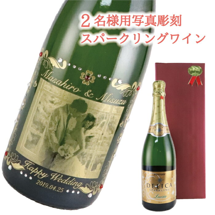 【2名様の写真向け】【スパークリングワイン】※シャンパンに変更可 写真入り 彫刻 お酒 名前入れ 名前入り ないれ オリジナルラベル スワロフスキー お祝い 内祝い 結婚祝い 記念品 結婚 記念日プレゼント カップル ギフト 贈り物 おしゃれ かわいい glassjapan