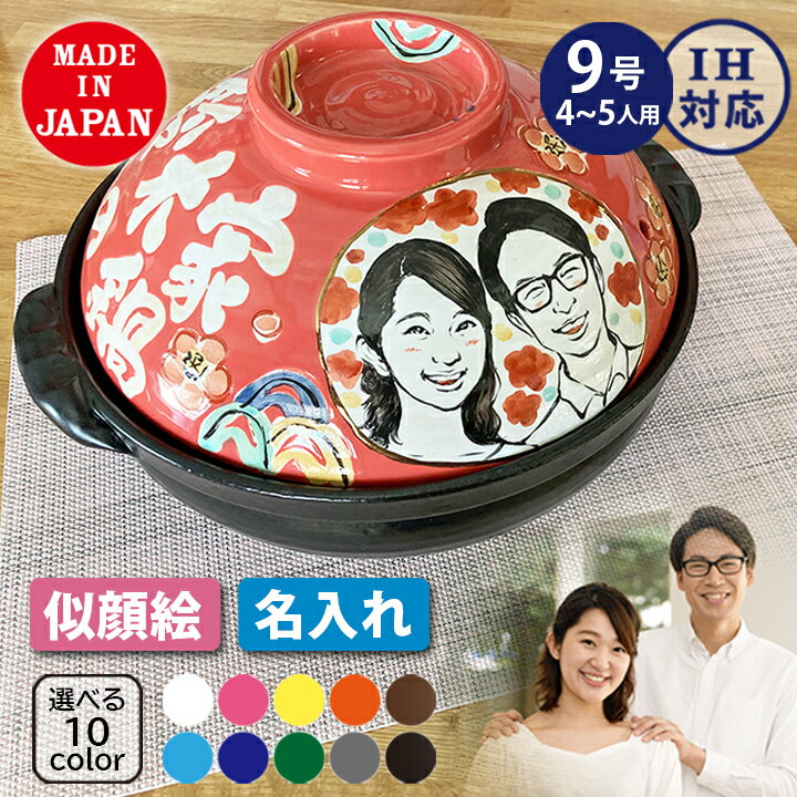 結婚祝い 新築祝い プレゼント 名入れ わが家 似顔絵 土鍋 9号 ( 似顔絵二名様分 ) オーダー ギフト おしゃれ 贈り物 ガス IH対応 (和) 名前入り 炊飯 ご飯 ih対応 日本製 入籍祝い 還暦祝い 内祝い 敬老の日 夕立窯