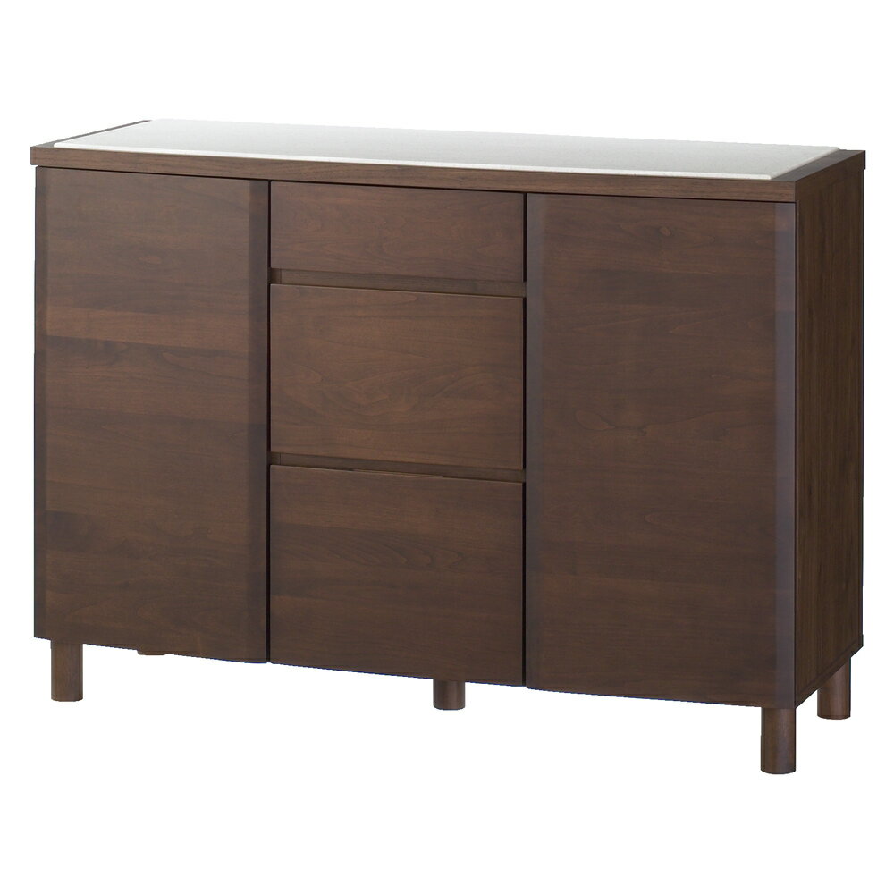柔らかでナチュラルな雰囲気が北欧風を演出するキッチン収納。柔らかなカーブをつけたアールデザインが天然木の風合いをさらに引き立てる家電台です。人工大理石天板など機能も充実。アルダー天然木 アールデザインシリーズ前面のなめらかなカーブが優雅ささえ感じさせる美しいフォルムのキッチン収納シリーズ。アルダー無垢材の前板が、おしゃれなキッチンインテリアにぴったり。美しい姿だけでなく、機能面にもこだわったアイデア収納です。どうしても生活感があふれてしまう台所をセンス良くまとめるのに一役買ってくれそうです。北欧家具を思わせるやさしい雰囲気が圧迫感を感じさせないので、狭いキッチンにおいても。熱に強くお手入れ簡単な、人工大理石を使用したキッチン収納◆前面に合わせやわらかくカーブを描く天板は熱や汚れに強い人工大理石でできています。◆耐荷重30kgで大型レンジの家電収納としてはもちろん、調理台としてもご使用いただけます。◆パン生地をこねるなどの本格的な趣味の料理から、ちょっとした調理の際にも便利です。◆人工大理石に傷がついても、サンドペーパーでやさしく磨けば元通りになるので、家電ラック、レンジラックとして安心してお使いいただけます。◆人工大理石は傷や手垢が目立たない、扱いやすい素材です。天然木でもお手入れ簡単、水周りでも安心なウレタン塗装◆優しい風合いと存在感が魅力の天然木だけれど、お手入れが面倒…?そんなことはありません。◆天然木部分にはウレタン塗装を施し、水や汚れに配慮。さっと拭き取れば元通りの美しさに。◆ウレタン塗装は一般的なダイニングテーブルにも使用されるものです。◆天然木の表情がまるで憧れの輸入キッチンのような雰囲気を感じさせてくれるレンジ台です。収納ボリュームもたっぷり、収納力が自慢のキッチンカウンター◆引出しには全段フルスライドレールを採用。奥までスムーズに引き出せるので出し入れが楽々。◆カトラリーから小皿、散らばりがちなキッチンアイテムまで安心して収納できる食品ストッカー・キッチンストッカーとしても重宝します。◆開き戸部分には可動棚板をセット。たっぷり収納できるので、食器などを収納してカップボード、キッチンボードとしても。生活感を感じさせない優雅なフォルムで絵になる家電ラック◆前面のなめらかな曲面が美しいシルエットがアルダー天然木の木目をさらに引き立てます。◆シルエットや前面のカーブの美しさを際立たせるため、あえてプッシュ開閉式の扉に。◆美しい木目と無垢材の前板で、北欧インテリアにも調和するかわいいキッチンに。◆このシリーズでお客様にも見ていただきたくなるほどの余所行き顔のキッチンにしてみてはいかがでしょうか?安心の資材と国内生産のキッチンラック◆素材はJIS規格の定める安全性の高いF☆☆☆☆を使用しました。◆国内の職人が丁寧に仕上げた安心の日本製の食器棚・ダイニングボードです。ページ下部に画像の説明がございます。一部別売りの商品もございますので、説明文ご確認のうえご注文ください。>画像の説明はこちら<仕様・サイズ■色:(ア)ナチュラル、(イ)ダークブラウン■サイズ:幅120奥行44.5高さ86.5cm・重量48kg■前面…アルダー天然木(ウレタン塗装)、天板…人工大理石、側板…化粧合板、脚部…アルダー天然木(ウレタン塗装)■可動棚板4枚付き■お客様にて脚部取付■日本製■引出し小(有効内寸)・耐荷重:幅32.5 奥行33 高さ10 側板高さ6.5cm・耐荷重量約10kg■引出し中(有効内寸)・耐荷重:幅32.5 奥行33 高さ20 側板高さ13.5cm・耐荷重量約10kg■引出し大(有効内寸)・耐荷重:幅32.5 奥行33 高さ24.5 側板高さ13.5cm・耐荷重量約10kg■可動棚板1枚サイズ・耐荷重:幅37 奥行33 厚さ1.7cm・耐荷重量約5kg■脚部高:10cm【取り付け時間約20分】【送料マーク:E】 梱包サイズが大きいため、お部屋まで搬入できない場合があります。ご注文の際は、必ず事前に梱包サイズと設置場所までの搬入導線(通路の幅・高さ等)をご確認ください。>詳細な説明はこちら<この商品の配送料は7000円(税込)です。※北海道・九州・沖縄は地域特別配送料がかかります。この商品は下記のサービスが選択できます。※組み立て・開梱サービスは日時指定ができません。お届け前に配送所より配達日時のご連絡をさせていただきます。※別途配送料金がかかります。有料組み立てサービス※開梱サービス付きについて有料開梱サービスについて 画像の説明お届けは【カウンター 幅120cm】です。北欧家具風の温もりを感じさせるデザイン。食品庫としても電話台としても便利なカウンター。扉部の棚板は可動式。ビンなどの背の高いものも収納できます。※現在は扉の手前部分同様に奥にも反り止めが付いております。アルダー天然木の前面に加え、天板の人工大理石にも滑らかな丸みを持たせた上質感が漂うデザインのキッチン収納。アルダー天然木の無垢材と人工大理石の優美な曲面。上質素材が織り