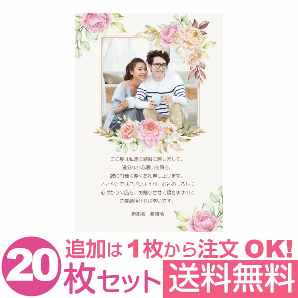 【あなたの写真とあいさつ文を入れて1枚から印刷OK】 送料無料 写真入り 20枚セット オリジナル メッセージカード 結婚報告 結婚内祝い 出産内祝い 快気内祝い お祝い お返し おしゃれな 挨拶状 ポストカード はがき ハガキ 葉書 グリーティングカード