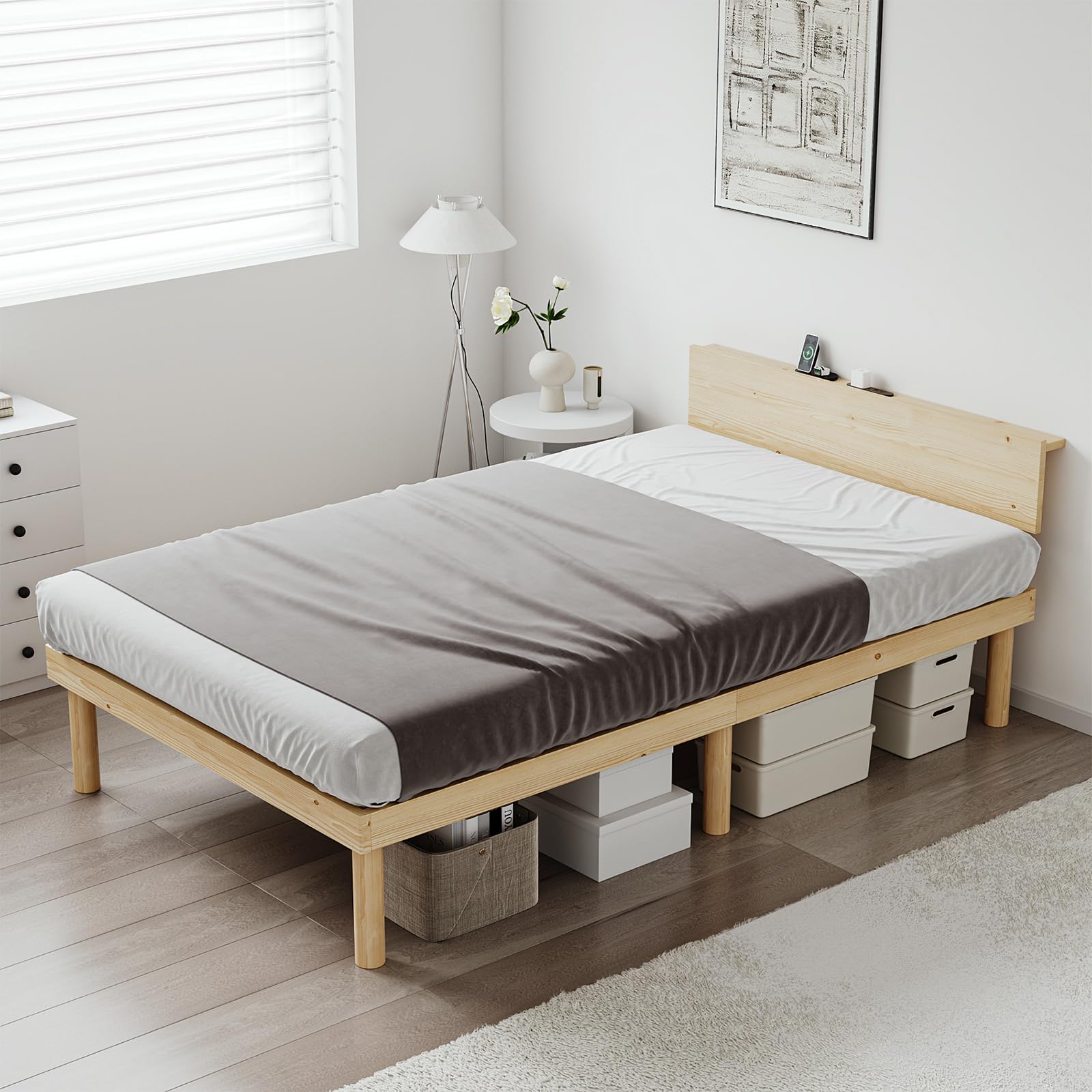 [SuperKois]ベッドベッドフレームダブル宮棚2口コンセントすのこベッドダブルベッドベット天然無垢パイン頑丈耐荷重200kg静音湿気対策ローベッドナチュラル