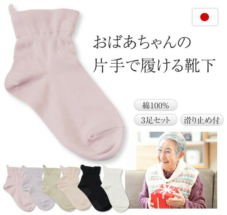 靴下 3足組 60代 70代 80代 お母さん シニア 靴下 3足セット レディース 母の日 実用的 ソックス 締め付けない 履き口 乾燥肌 敏感肌 日本製 ママ 義母 継母 滑り止めつき 春 夏 秋 冬 敬老の日 2024 22-24cm 送料無料 誕生日 プレゼント ギフト