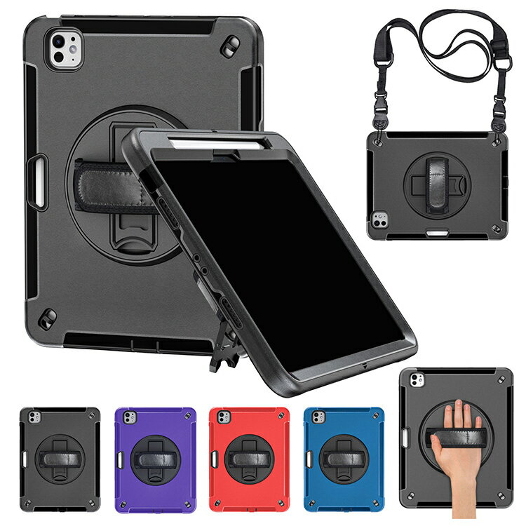 iPad Pro ケース iPad Air 2025/2024モデル 耐衝撃 カバー 11インチ TPU 耐衝撃ケース ペン収納 ショルダーストラップ/肩掛け紐 ストラップ付き 持ち手 ベルト 落下防止 片手操作 取っ手 スタンド機能 Apple アップル アイパッドプロ/アイパッドエアー 11インチ M2 M4チップ