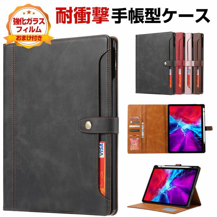 アップル Apple iPad Pro 11インチ 第5世代 iPad Air 11インチ 第6世代 2024モデル ケース カバー タブレットケース 耐衝撃カバー CASE 薄型 カード収納 手帳型カバー Pencil収納機能 スタンド機能 ブック型 PUレザー ブックカバー 強化ガラス付き
