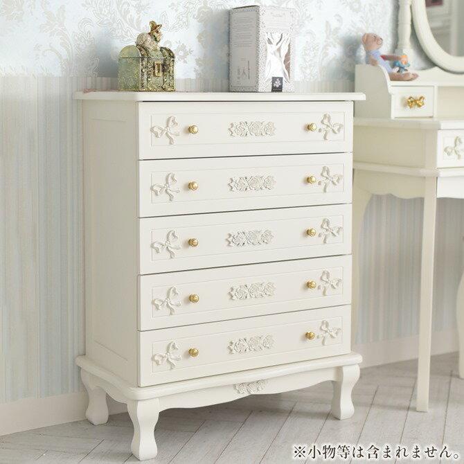 ▲2026年2月末入荷予定▲ チェスト アンティーク 調 おしゃれ 輸入家具 ロココ 調 北欧 完成品 プリンセス 5段チェスト ヨーロピアン フレンチスタイル 収納 かわいい 一人暮らし リボン 彫刻 たんす コンパクト 猫脚 [Y]