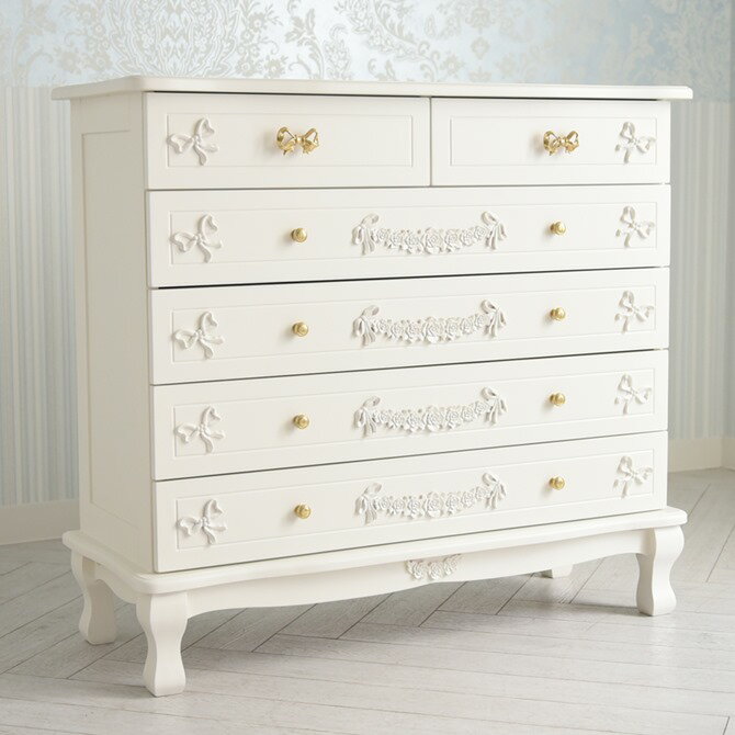 12/4(木)20:00〜【特別価格】 ▲2026年4月末入荷予定▲ Oshi Ribbon 姫系 チェスト ホワイト 幅65cm ロココ調 タンス 引き出し 5杯 収納家具 衣類収納 グッズ収納 猫脚 輸入家具 かわいい 白家具 完成品 [Y]