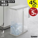 ゴミ箱 45リットル対応 45l対応 おしゃれ 分別 キッチン ダストボックス 約幅20cm ふた付き 大きい 薄型 大容量 ペットボトル 蓋付き ゴミ袋 スタンド 黒 北欧 缶 ビン コンパクト 2個組 縦開き 横開き( 山崎実業 スリム蓋付き分別ゴミ袋ホルダー タワー 45L tower )
