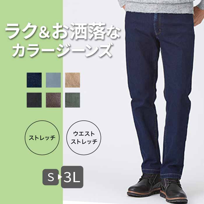パンツ メンズ<コムルヴァン・オム>ラクしてカッコいいカラージーンズ(S 股下65cm〜5L 股下75cm) メンズ 紳士 ボトムス ジーンズ メンズ シニア 大きいサイズ ゆったり