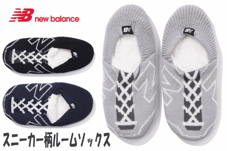 ニューバランス あったか ルームソックス ルームシューズ メンズ レディース ジュニア モコモコ スリッパ JASL0756 靴下 スニーカー柄 室内履き かっこいい かわいい 女性 男性 プレゼント グレー ネイビー ブラック 紺 灰色 黒 23cm 24cm 25cm 26cm 27cm 28cm