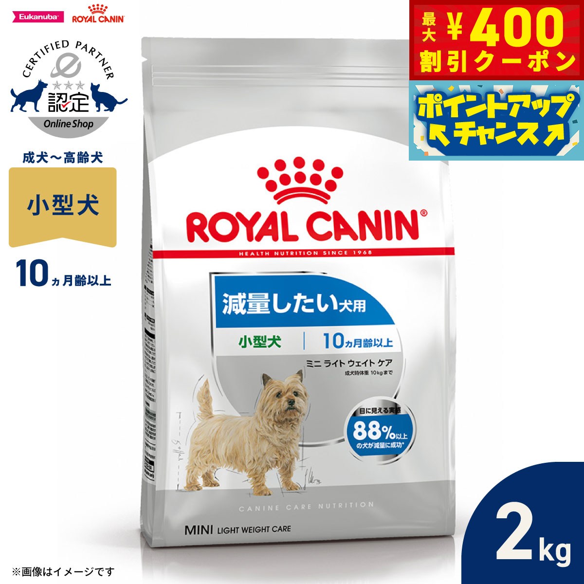 【400円OFFクーポン!&店内ポイント最大42倍!3月1日!】ロイヤルカナン 犬 ドッグフード ケーナインケアニュートリション ミニ ライト ウェイト ケア 2kg 正規品 減量したい犬用 小型犬専用 成犬〜高齢犬用