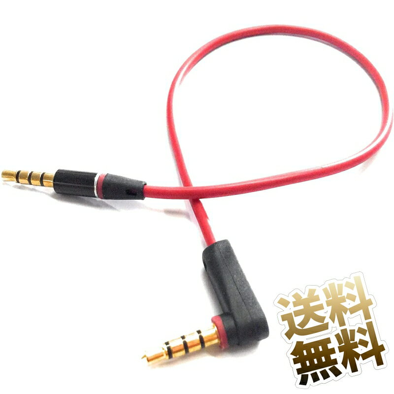 オーディオケーブル 片側 L字型 3.5mm 4極 金メッキ 約30cm (端子含む) レッド オス-オス