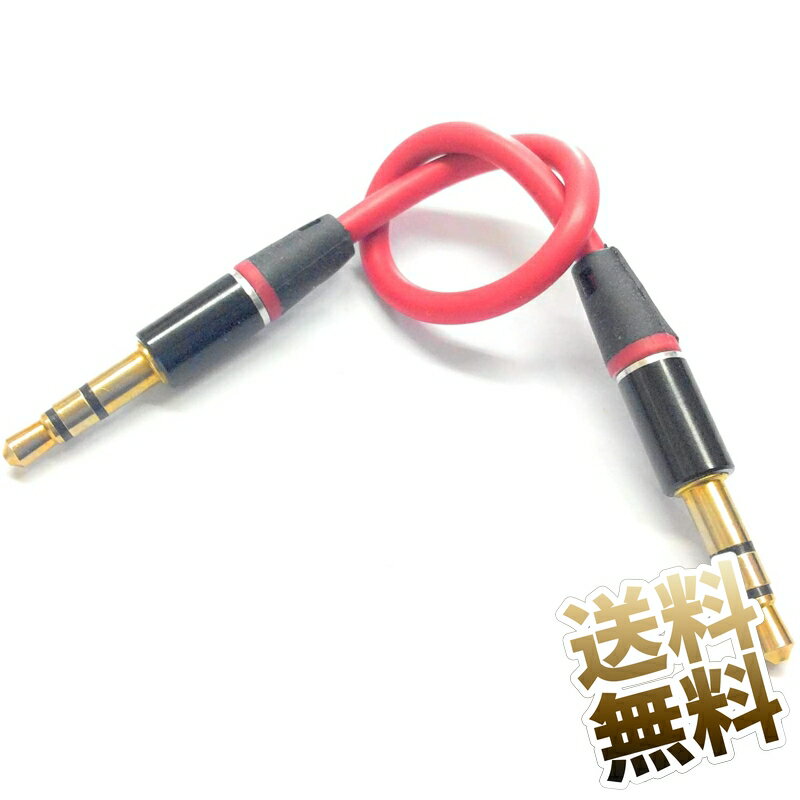 【3.5mm 3極】オーディオケーブル 約13cm (端子含む) オス ストレート 金メッキ レッド