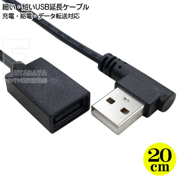 短いUSB延長ケーブル 右L型 20cm USB2.0 Aタイプ(オス)-USB2.0 Aタイプ(メス) 電力供給・データ転送対応 最大電力量 5v2A 端子 L型 (右折れ) ケーブル長 約20cm 直径3.5mm極細ケーブル コンパクト端子採用 変換名人 VL-C20/P