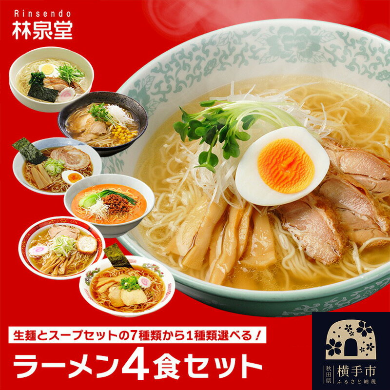 【ふるさと納税】選べる林泉堂のラーメン(麺&スープ) 4食 比内地鶏 塩ラーメン 旨味噌ラーメン コク醤油ラーメン 十文字ラーメン 担々麺 中華そば クロネコゆうパケット
