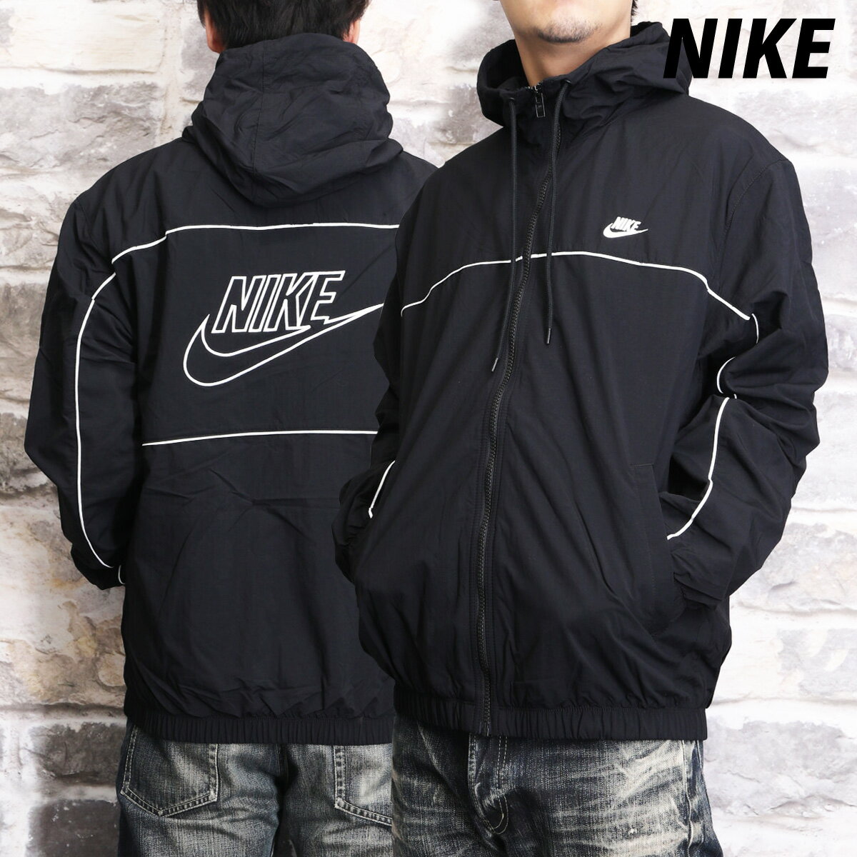 スーパーセール最大3000円オフクーポン有! ナイキ ウインドブレーカー メンズ ウインドジャケット シャカシャカ アウター クラブ フード付き フーディ バックプリント付き 裏メッシュ 裏地付き フルジップ ブランド NIKE HJ2013 黒 ブラック 新作 ウーブン woven