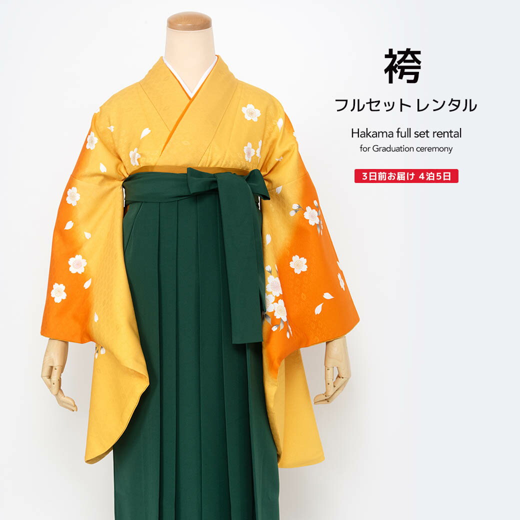【スーパーSALE限定☆最大3000円クーポン配布中☆】【レンタル】袴 レンタル 先生 袴セット セット 教員 卒業式 女 女性 フルセット シンプル 大人 オレンジ 深緑 桜 レディース 学校 和服 着物セット 往復送料無料