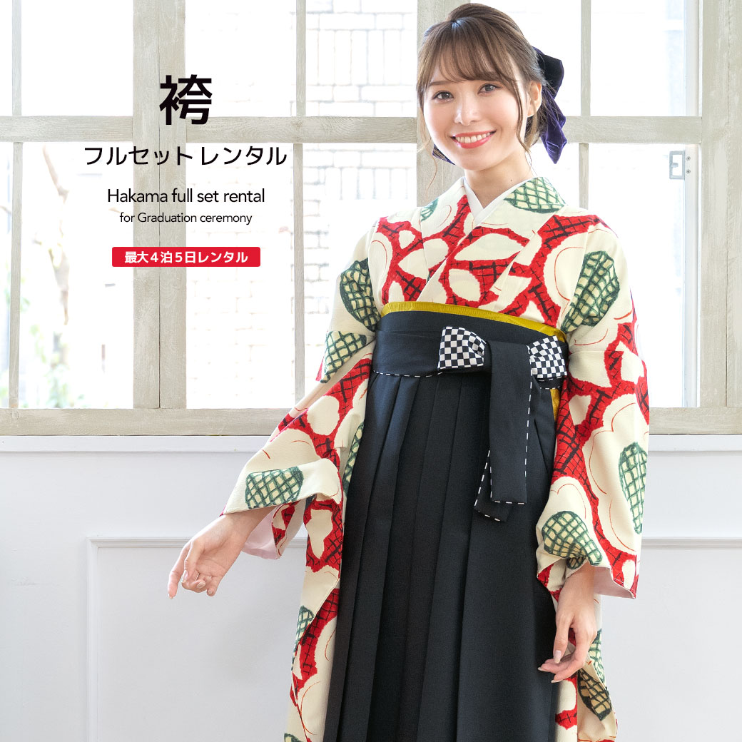 【スーパーSALE限定☆最大3000円クーポン配布中☆】【レンタル】袴セット 卒業式 袴 レンタル 女 女性 フルセット 赤 レッド 白 黒 マーガレット 花 市松格子 振袖 キスミス 大人 レディース 大学 和服 着物セット創美苑 往復送料無料