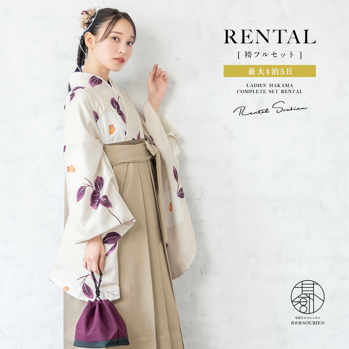 【スーパーSALE限定☆最大3000円クーポン配布中☆】【レンタル】卒業式 袴 レンタル 女 女性 袴セット フルセット 大人 レディース 大学 和服 着物セット白系 緑 椿 花 縞 ストライプ ベージュ 創美苑 往復送料無料