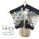【スーパーSALE限定☆最大3000円クーポン配布中☆】七五三 着物 男の子 5歳 レンタル 羽織袴 袴セット フルセット 黒 ブラック 鷹 鳥 松 唐花蜀江文 着物レンタル 五歳 袴 子供着物 男児 モダン 創美苑【往復送料無料】