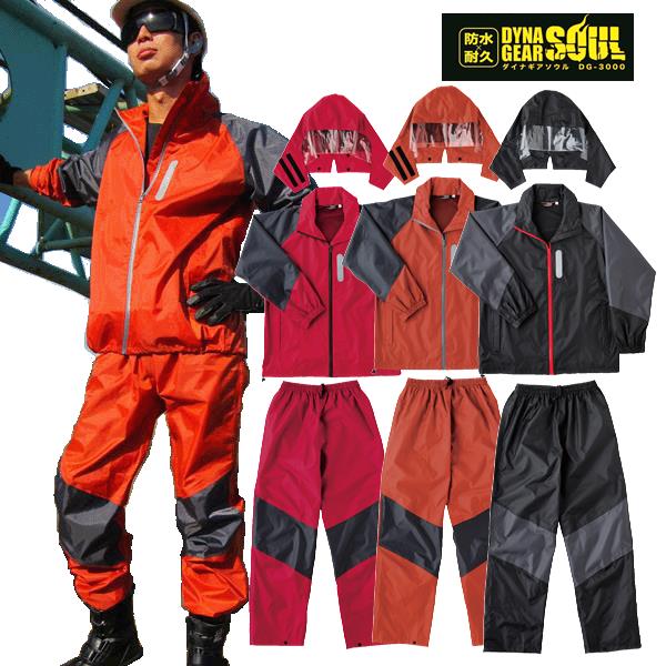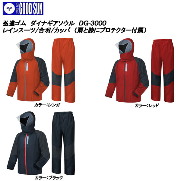 レインウェア 上下 弘進ゴム ダイナギアソウル DG-3000 ブラック レッド レンガ【作業用 レインウェア レインウェア 上下 作業合羽 仕事 合羽 カッパ 上下 アウトドア ヘルメット対応】【送料無料(沖縄・離島を除く)】【お取り寄せ】